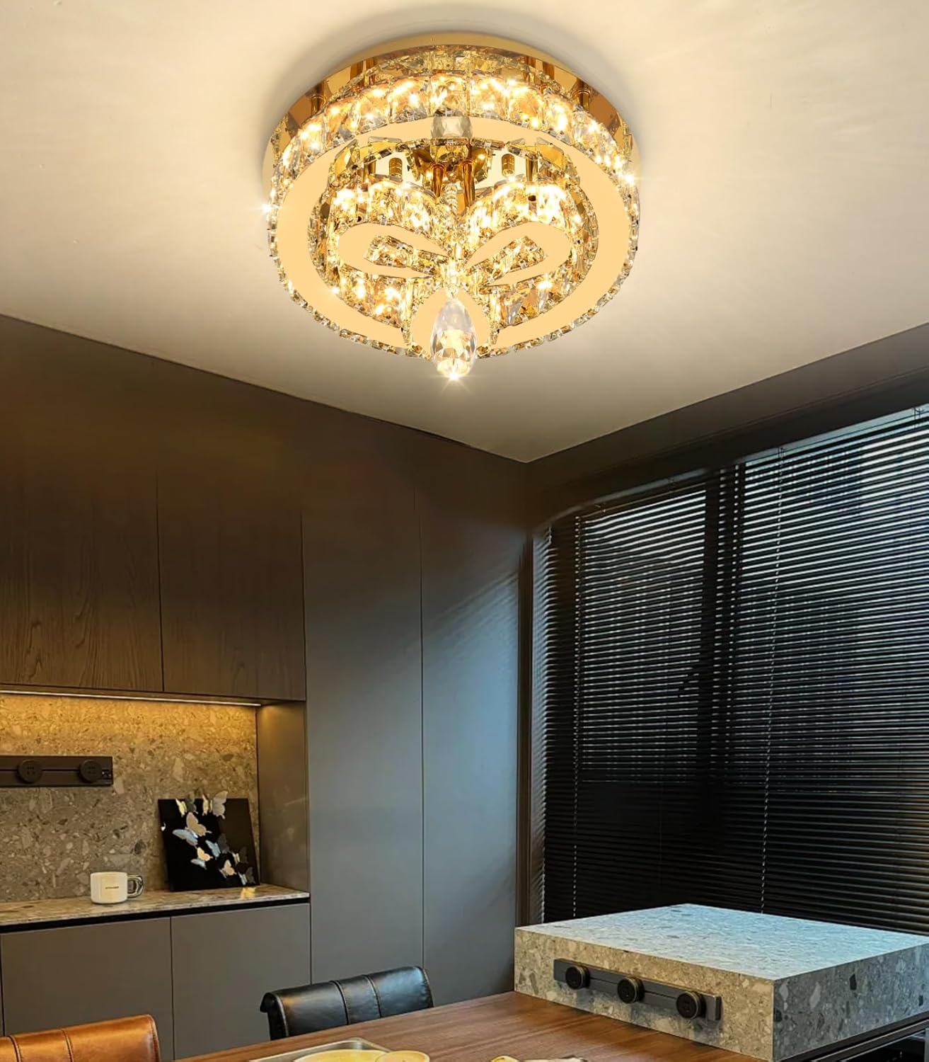 12'' Modern Crystal Chandelier LED Dimmable Flush Mount Ceiling Light Pendant Light for Hallway Living Room Bedroom Dining Room Foyer Gold