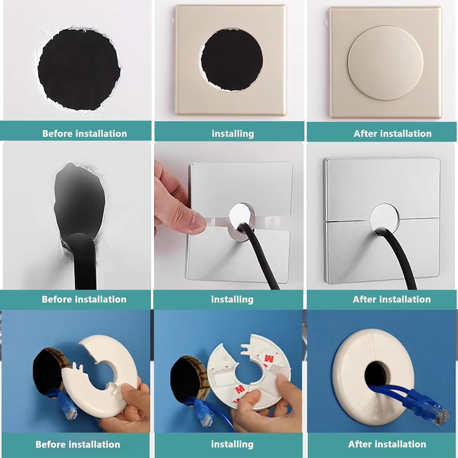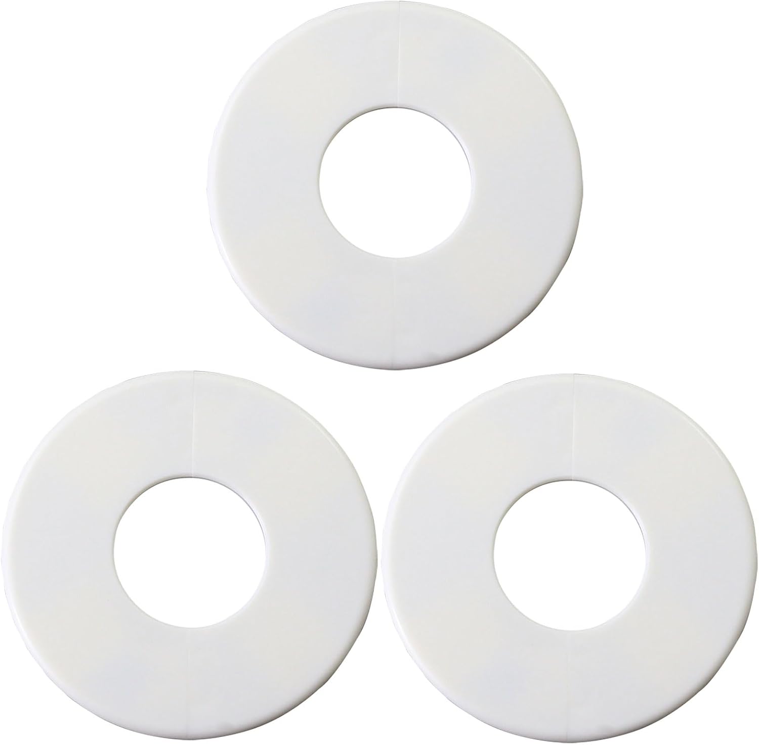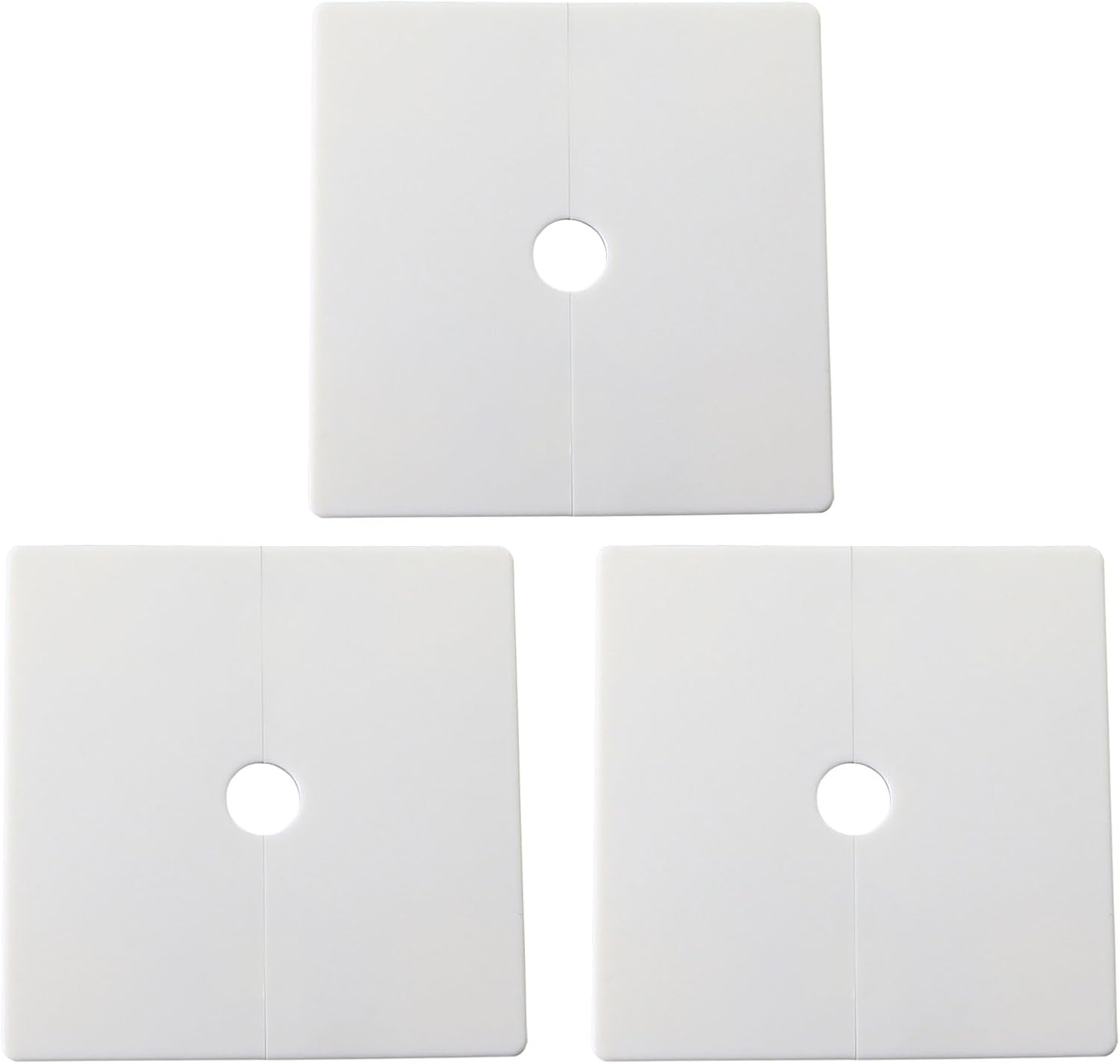 Use these multifunctional wall mounted split flange covers to turn your piping installation into a stylish and professional installation. This set of 3 circular white ABS plastic covers features a practical square design with openings, perfect for hiding gaps around pipes and creating a delicate appearance in offices and study rooms. The innovative buckle design can be easily installed around existing pipelines or wires. These decorative covers effectively conceal unsightly pipe penetrations and rough drywall edges, providing a clean and tidy appearance. Each board can be quickly disassembled and installed around the pipeline, making it an ideal choice for retrofitting existing pipelines without completely dismantling the pipeline and wiring. Durable structure complements any decorative style while maintaining functionality. Very suitable for concealing ugliness in home and bathroom kitchen plumbing wall panels.