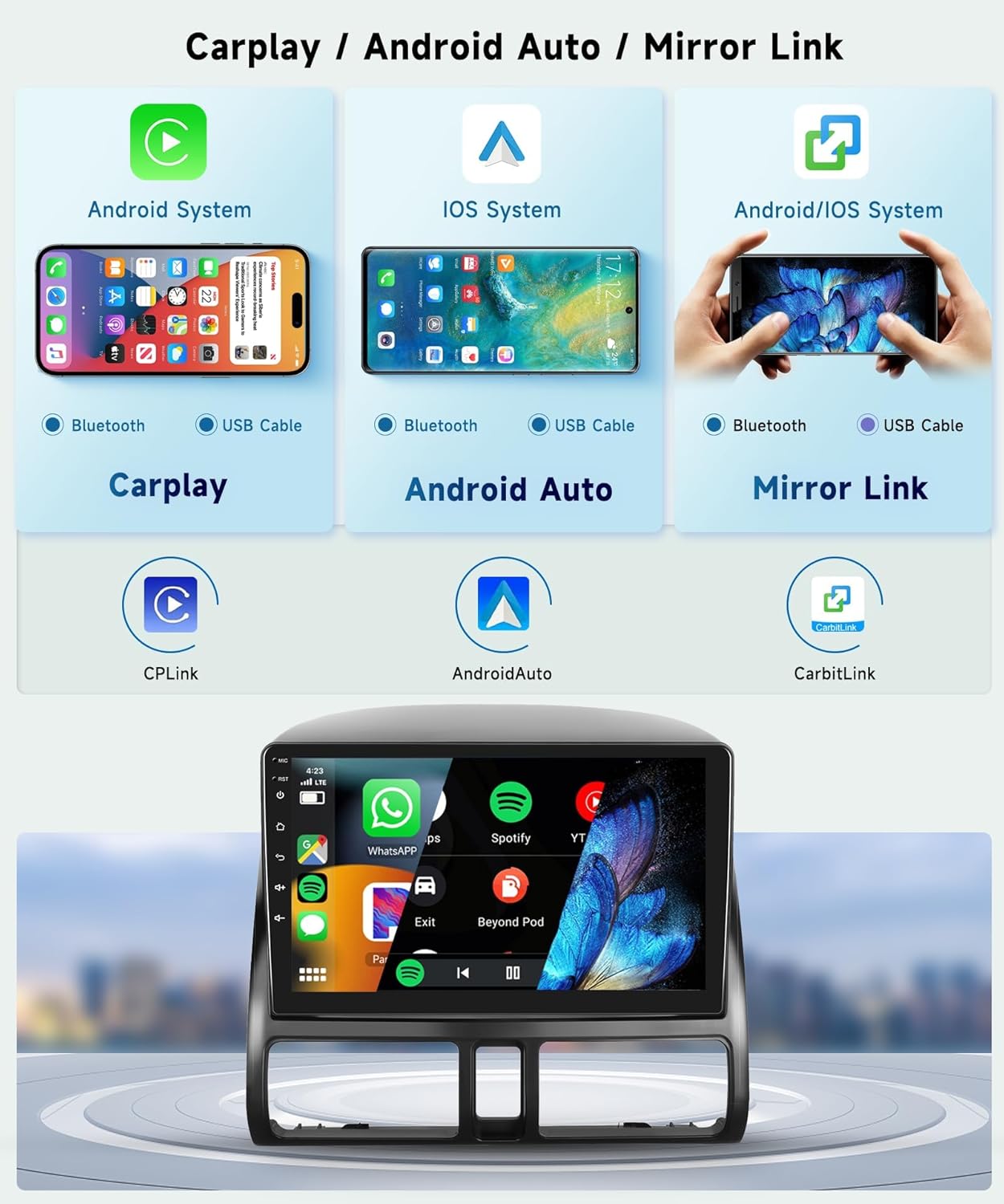 | BuiltIn Media | Android Car Stereo, External Microphone, GPS Antenna, HD Backup Camera |