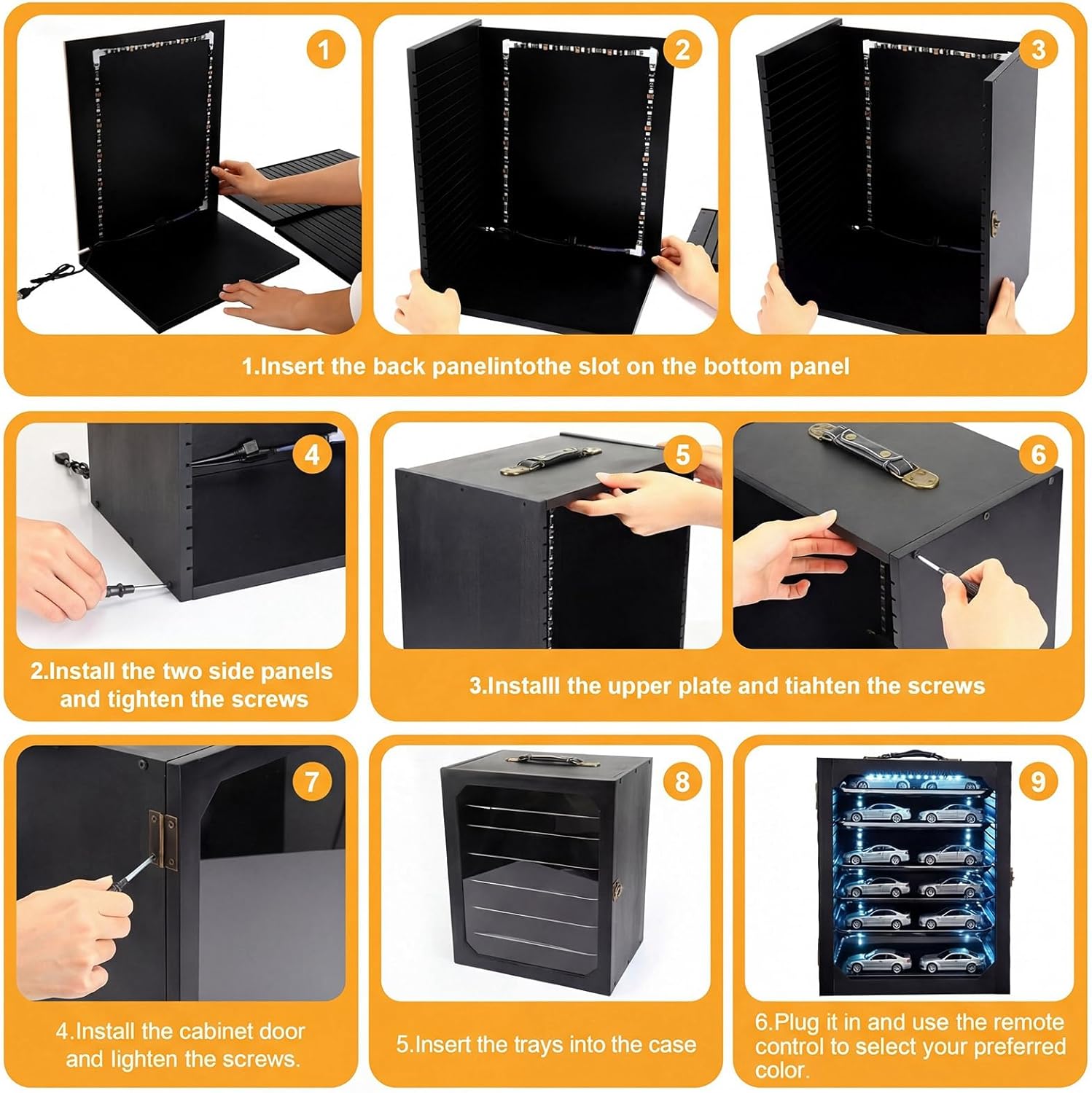 Features: Crafted from quality wood, the figure display case boasts a robust, scratch resistant exterior that withstands daily wear and tear, for long term use in homes, offices, or hobby rooms. The solid frame not only adds a premium, timeless look to your space but also provides reliable protection for your valuables, . The hobby display cases requires minimal assembly with easy steps, so you can set it up in minutes. Its compact size fits neatly on bookshelves, desk corners, or dressers, maximizing storage space without cluttering your area. Whether you're displaying a small collection in a cozy apartment or organizing hobby supplies in a home office, it balances functionality with space efficiency, adapting to various living environments. Specifications: Material: wood, metal Color: black case Size: about 16.5 x 13 x 10 inch Package includes: 1 x Shadow boxes display cases with 6 trays 1 x Remote control LED light Notes: Manual measurement, please allow slight errors on size. The color may exist a slight difference due to different screen displays Batteries are not included