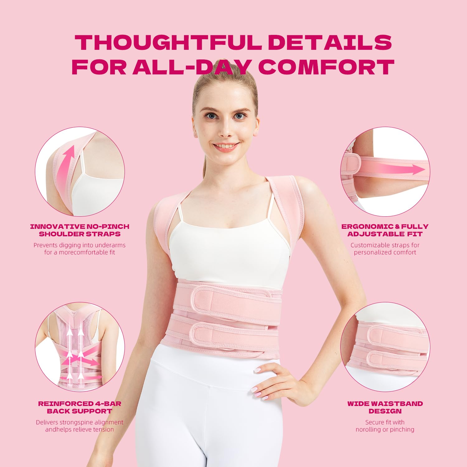 | Special Features | Adjustable, Breathable, Lumbar Support, Pain Relief, Posture Correction |