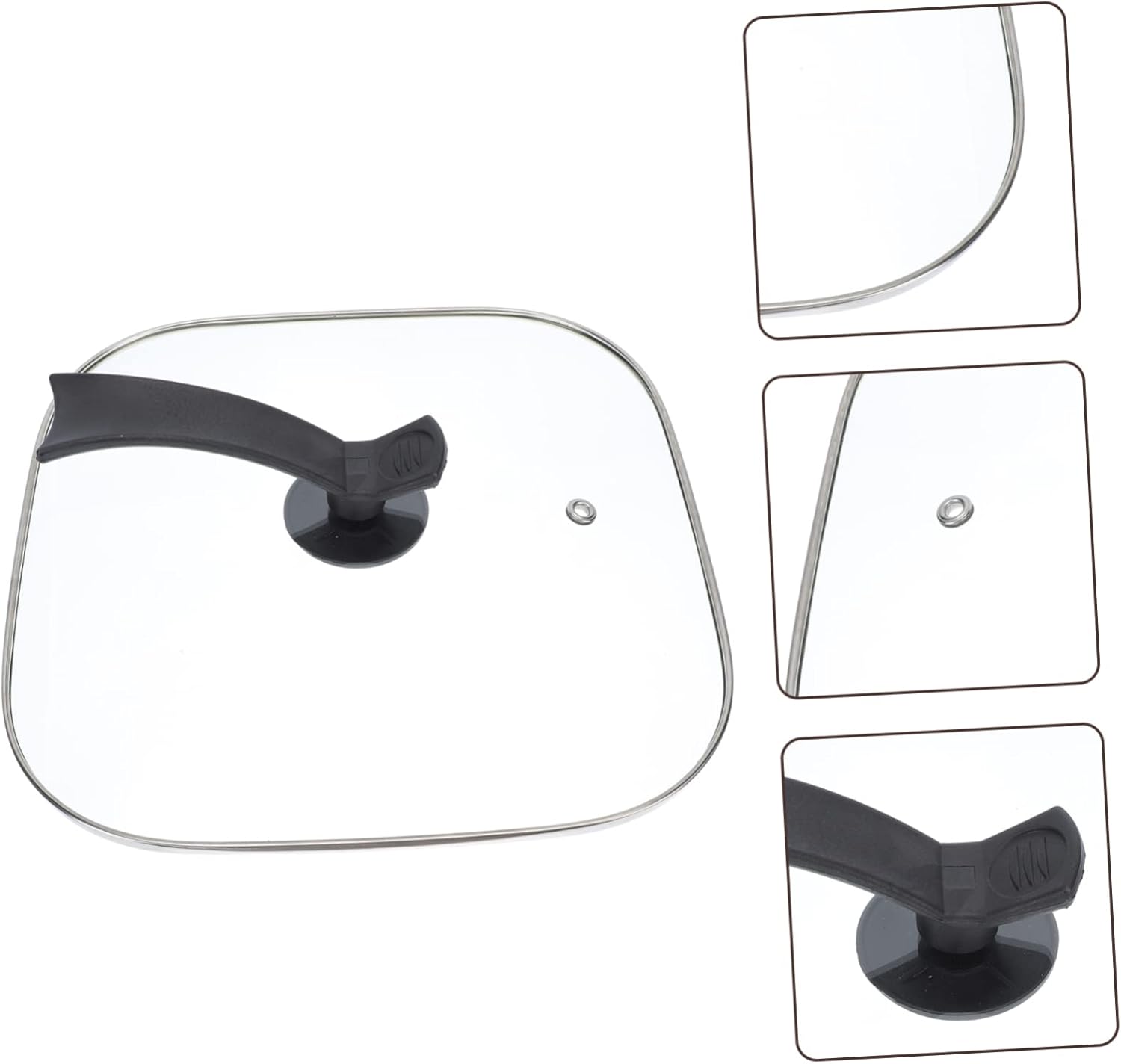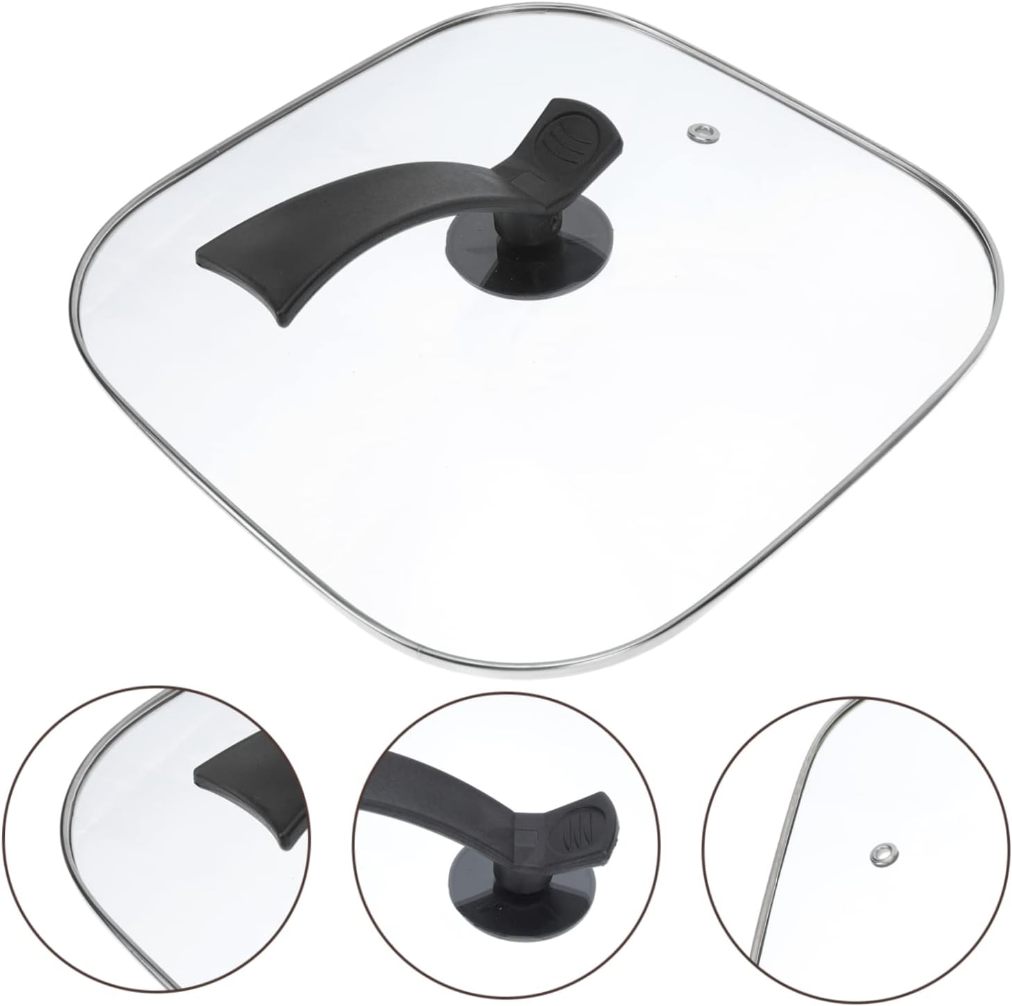 Package List 1 Characteristics -Material: Glass, plastic glass lid covers -Product Info:Electric wok glass lid -Size: About 29.70X29.70X4.00cm/11.67X11.67X1.57inch Household Glass Cover -Color:Transparent universal pot cover -Tempered glass material, it is visible and transparent cookware lid. -Edges are with stainless steel seal, prevent cracking, prevent cutting hands cookware cover. -Plastic handles prevent heat conduction, safer when cooking Electric Square Heating Pot Cover. -Vertical handle, saving space, convenient placement clear glass pan lids. -Round deflating hole to balance pressure in pot Multi-functional Pot Cover.Goods InformationTransparent Pot Cover Are you still looking for a suitable lid? Look at us! Our product is a pot cover, with anti-scald and anti-overflow functions.square pot cover lid The material is in workmanship, heat-resistant, easy to use, and