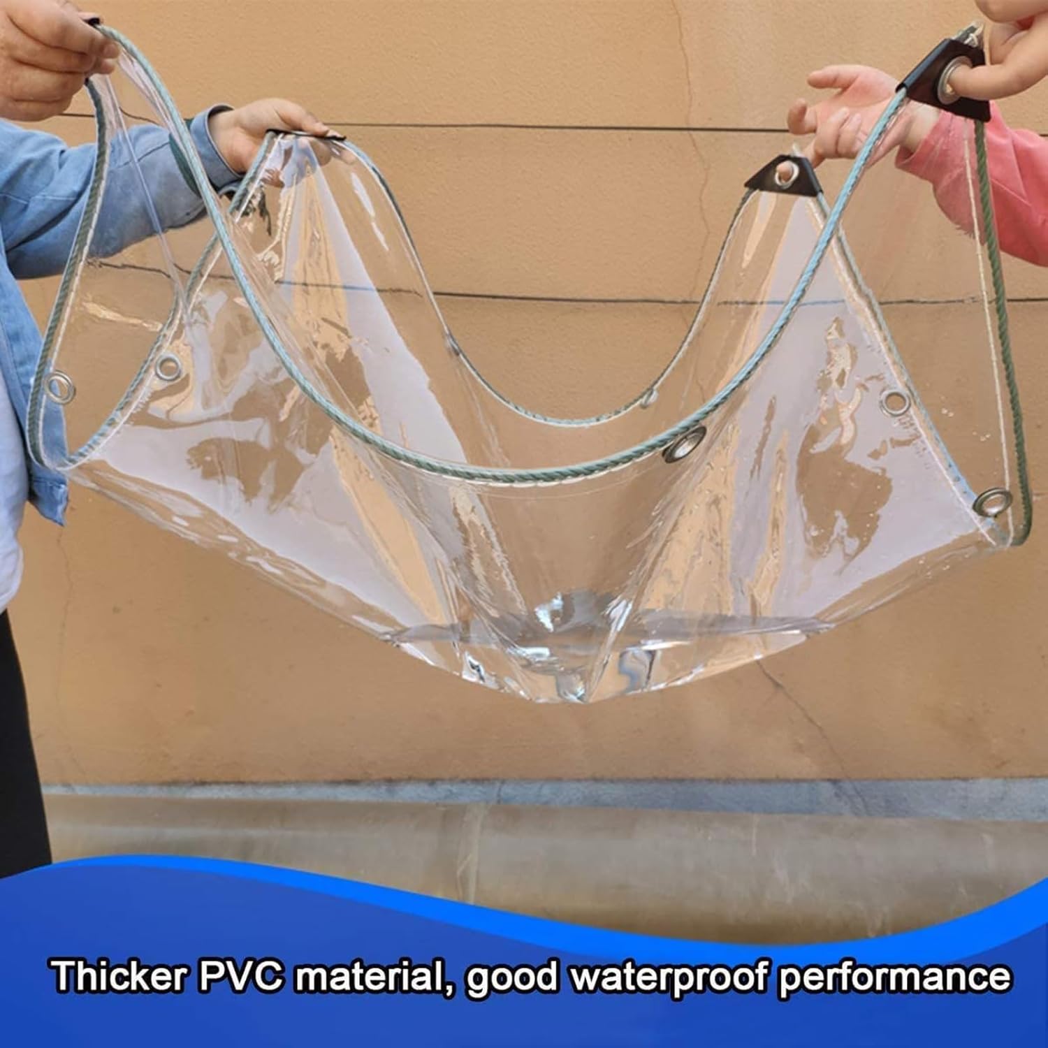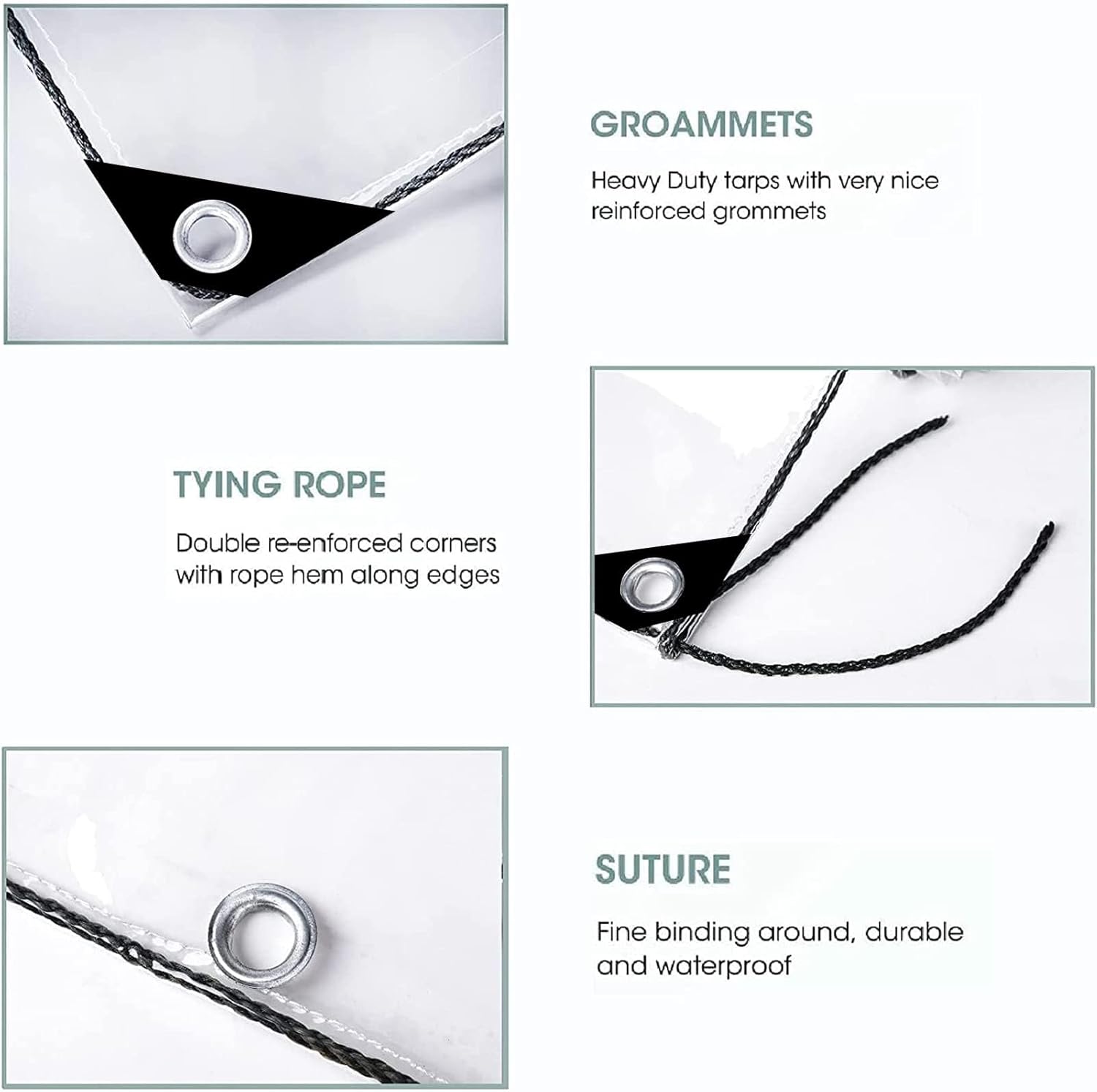 • TARPAULIN PERFECT MATERIAL - Transparent PVC plastic, thick material, high temperature heat-sealed double-layer edging, firm, tear-resistant, durable. durable. Transparence : 99% ; indice de résistance à l'eau : 100 % ; épaisseur : environ 0,3 mm/poids : 400 g/m²,Le diamètre de l'œillet est de 1,6 cm et la distance est de 50 %