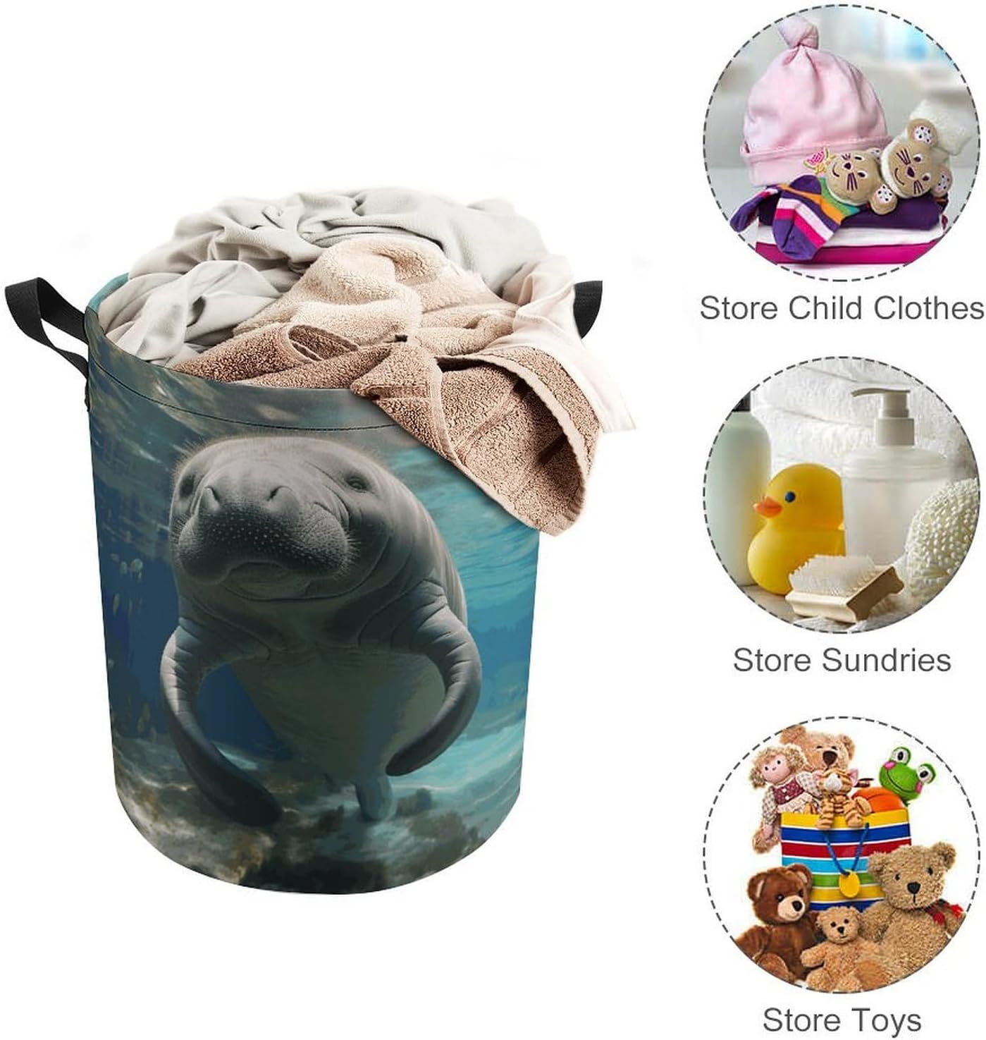 This large collapsible laundry basket is here to transform your home organization. Made from smooth Oxford cloth with a water-resistant coating, it handles damp towels and soiled clothes without absorbing moisture or retaining odors. The drawstring closure adds an extra layer of protection, keeping your items clean and dust-free whether it’s placed in your walk-in closet or a hotel bathroom. When you’re done, it folds down to a slim profile that fits easily in a storage bin or under the bed, making it perfect for small apartments, campervans, and vacation rentals.This cute laundry hamper blends functionality with a playful, stylish design that complements any decor. Measuring 13.8 inches in diameter and 17.3 inches in height, it has plenty of room for a family’s daily laundry, while its lightweight build means you can carry it with one hand thanks to the sturdy side handles. Whether you’re tossing in workout gear after the gym, stowing away extra blankets for guests, or packing it for a weekend trip, it adapts to your needs effortlessly.For anyone who loves to explore, this travel laundry bag is a game-changer. No more mixing dirty clothes with clean ones in your suitcase—simply toss your used garments into this bag, cinch the drawstring, and keep your luggage organized. Its foldable design means it takes up virtually no space when empty, so you can tuck it into a backpack or carry-on without adding bulk.Whether you’re staying in a hotel, camping in a campervan, or settling into a vacation rental, this bag keeps your belongings neat and tidy, making every trip stress-free.