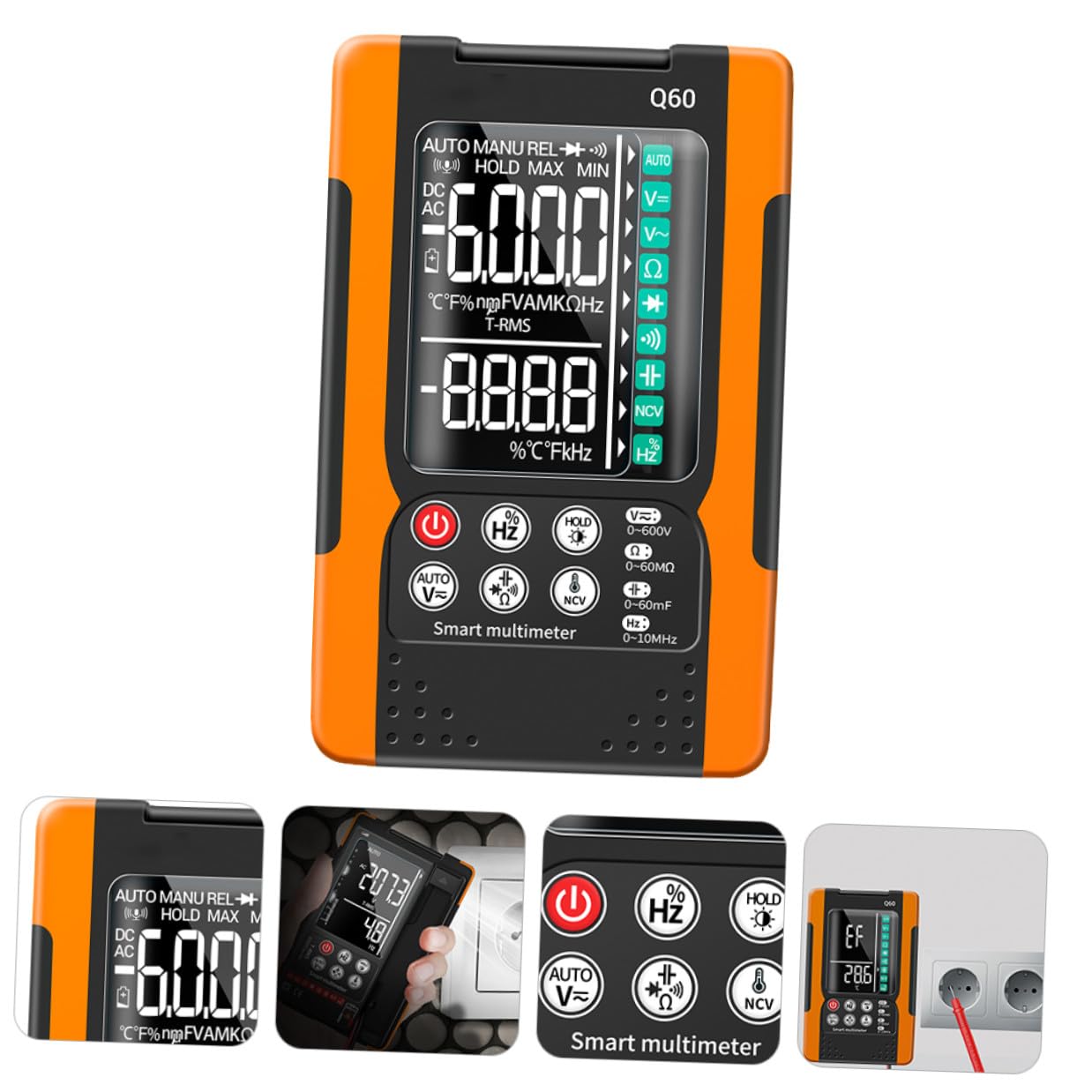 Package List 1 x digital multimeter (without battery) 1 bag 1 x manual 1 x lanyard 1 x packing box Characteristics - voltage: 0~600V Multimeter for Repairing. - Hertz/frequency: 0~1000MHz multi meter digital. - Material: Canvas, ABS, electronics, rubber, copper. - Size: About 12.50X8.00X2.30cm/4.91X3.14X0.90inch. - Capacitance: 0~6000mF volt meters. - Room temperature measurement: 0~40℃ voltage testers. - Battery: AAA Battery*2 (Not included) compact multimeter. - DC voltage: 0~600V multimeter pocket portable. - Resistance: 0~6000MΩ Multimeter for Home. -Product Info:Digital multi-purpose table - Design with flashlight, it is safe and practical, and can be used at night voltage tester multimeter. - It has a wide range of applications and can accurately and measure voltage, current, resistance, etc test meter electrical. - Small size, easy to carry, can be better used in electrical inspection and maintenance. - It is made with excellent craftsmanship, safe and durable, with excellent texture, and can serve you well multifunctional digital multimeter. - The maximum display is 6000 counts Portable Multimeter. - and good craftsmanship ensure its practicability and safety.Goods Informationvolt meters This digital multimeter, made of safe and practical materials, with scientific design and practical functions, and can accurately and measure voltage, current, resistance, etc.voltage meter tester The reasonable structure makes it safe to use, easy to carry, can well meet your work needs, and provide you with more convenience