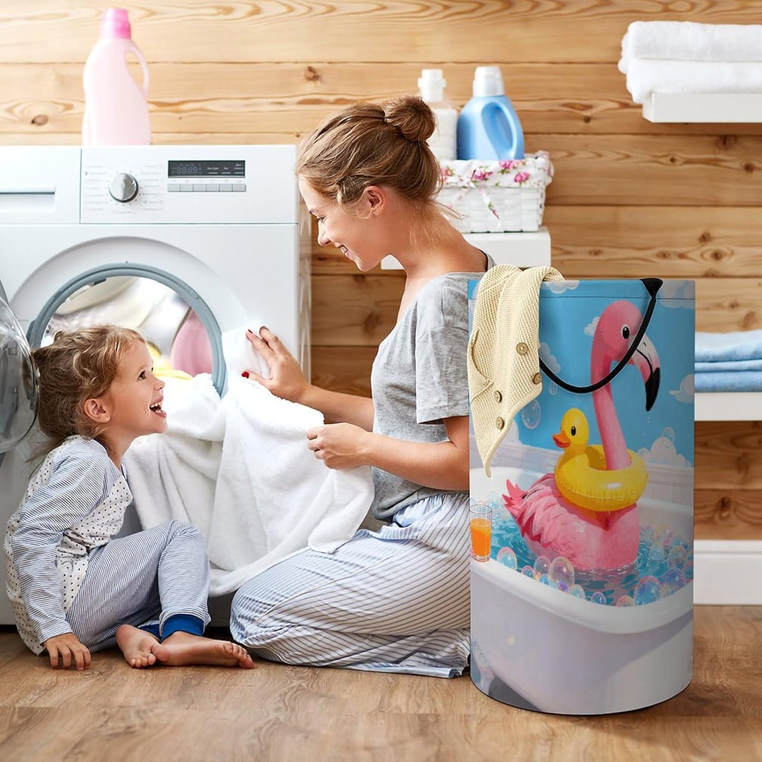 The pattern of the Flamingo And Yellow Duck hamper is printed with exquisite patterns, which makes the product more attractive.Chic design allows it to be used in the living room to hold throw blanket, pillows, and reading materials, as well as in the bathroom for towels, or as a laundry hamper.The laundry hamper adopted collapsible design, equipped with handles. It is lightweight and portable for using, storing, and moving conveniently.Flamingo And Yellow Duck Clothes hamper is suitable to store dirty clothes washing, place in the room to store toys, and other household goods, keep the house clean and tidy. Perfect laundry hamper for home, office, closet organizer, bedroom, bathroom, college dorm, etc.Gets out of your way when you need it to. This storage basket or laundry hamper is a good gift, which not only meets everyday storage needs but also carries deep care and love, a perfect way to turn thoughtfulness into warmth.