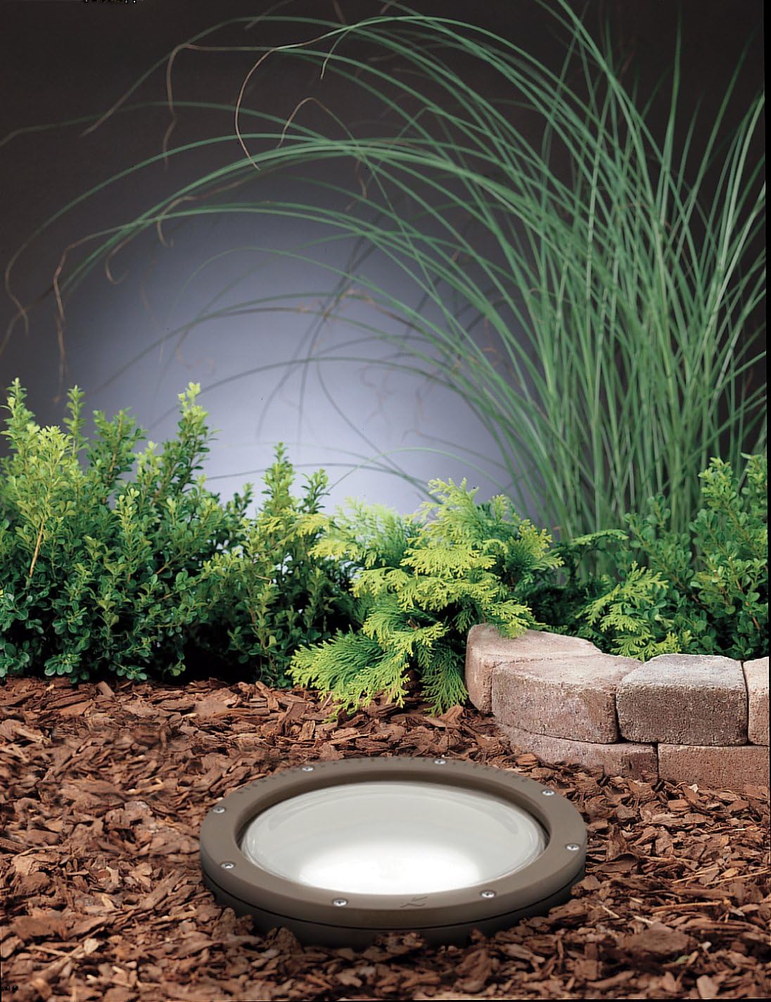 Kichler Landscape 10" diameter well light, requires a 150W PAR38 lamp suitable for in-ground lighting. Adjustable to 150-degrees. Use to enhance the appearance of landscape plantings and trees. Can also be used for a wall wash.