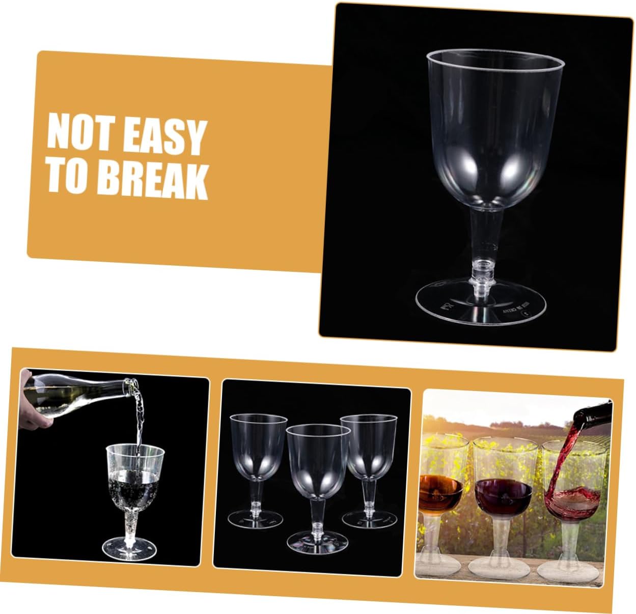 Package Include 48 x Wine Cups Characteristics -Material:Plastic Plastic Cocktail Cups -Color:Transparent plastic goblets -Size:12.00X7.00X7.00cm/4.72X2.75X2.75in Multi-use Wine Cups -Capacity: 180ml/6oz wine glasses - Made from sturdy material for and use during your party Party Supplies. - Enough plastic cups, so these plastic cups can meet your different needs, and has a wide application Restaurant Cups. - Crafted from good material, stable and , can well serve you and bring you a good mood Plastic Cups. - This whiskey cup is suitable for festival party, bar, restaurant, wedding banquet, etc Beverage Cups. - Excellent stability, no bad substances will be produced after storing wine, to use wine cups.Goods DescriptionCocktail Cups Smooth cup mouth and creative design make you feel comfortable using it.wine glasses for parties This cup is your .party cups Are you looking for a cup for your party? Here it is, simple shaped juice cup, manufactured with sturdy material, pretty and