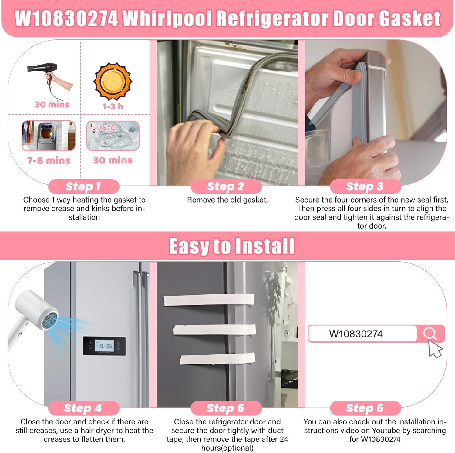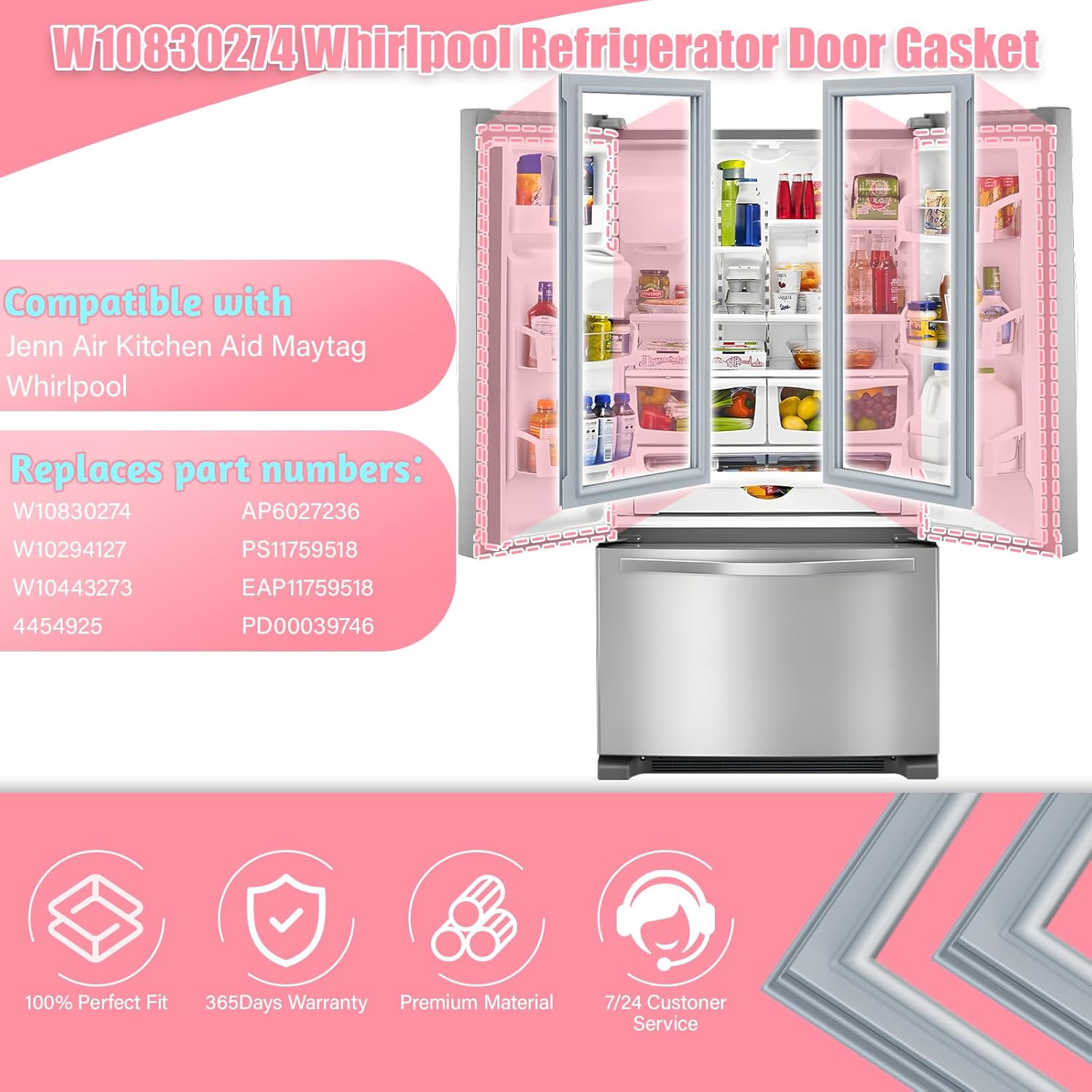 | Included Components | 1* part W10830274 W10443273 refrigerator door sealer replacement, 12 months warranty, 24/7 online service |