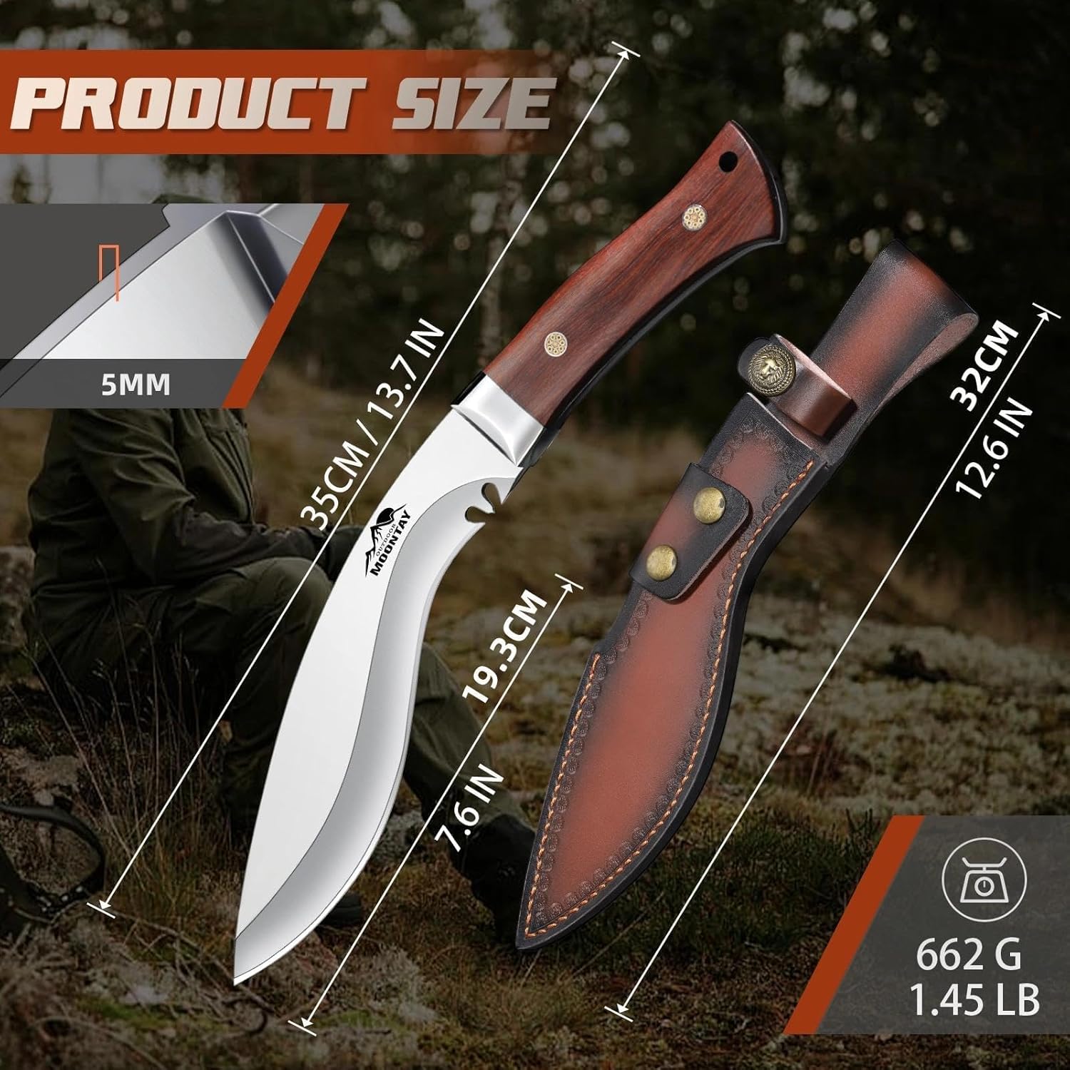Moontay Fixed Blade Kukri Knife and Outdoor Cleaver with Sheath