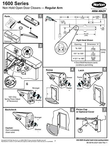 The 1600BC Series door closers offer proven quality, performance and reliability unmatched by the competition. A staple in the industry, these ANSI/BHMA Grade 1 closers are designed for exterior or interior doors. All Closers are full rack-and-pinion types with cast aluminum alloy body and are non-handed to permit installation on doors of either hand. The Closer fluid contains lubricity and anti-oxidation agents maintaining stable viscosity to allow door closer to perform in temperatures ranging from extremely high to as low as -40°F. Typical Applications: Recommended on interior or exterior doors including: Aluminum Storefronts, Office Doors, Utility Closets, Storage Rooms. FEATURES: • full rack-and-pinion type with cast aluminum alloy shell, • heavy duty cast aluminum body, • Spring Adjustable sizes 1 - 6. • Maximum degree of swing is 180°, trim permitting. • Tri-style packaging: regular, top jamb or parallel mounting, • Non-handed for installation on right- or left- hand swing door, • 2-7/8" projection. BENEFITS: • High strength aluminum alloy closer body provides for long life, • Exceeds 25 million cycles, • Longer life results in fewer replacements and less material used, • Covered by Norton End-of-Life Recycling Program. Color: 689 Aluminum. CERTIFICATIONS- Code Compliance: • ANSI/BHMA A156.4, Grade 1 certified, • UL / cUL listed for use on fire rated doors, • UL10C listed for positive pressure fire test, • Meets requirements for Americans with Disabilities Act (ADA) and ANSI/BHMA standard A117.1 WARRANTY: 25-year limited warranty.