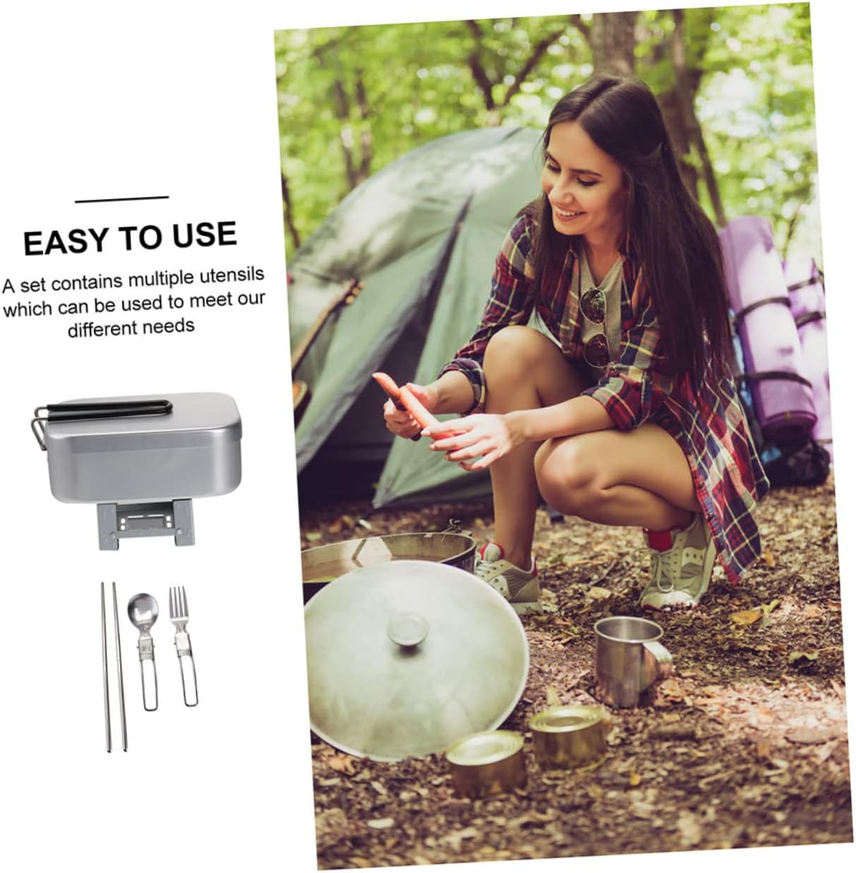 Package Include 1 x food box 1 rack 1 x stove 3 x tableware 1 x wind shield 1 x bag Characteristics - Color: Silver Aluminum Lunch Container. - Size: About 16.00X9.50X6.00cm/6.29X3.73X2.36inch. Camping Supply - Material: Aluminum, cloth Camping Cookware. - It is easy to carry and use for outdoor activities such as picnics, outings, and camping Hiking Cookware. - It can be given to those who like outdoor activities as excellent present Camping Accessory. - Fold the handle to save space. Smooth surface, will not hurt your hands Backpacking Cookware. - for camping, hiking, hunting, survival, etc., will be a nice tool for you Outdoor Cookware. - Aluminum and cloth material, and , healthy and Camping Lunch Holder.Goods DescriptionCamping Lunch Holder Compact size, can be stored in a bag for space saving and convenient carry.Camping Accessory Our outdoor lunch box is suitable for your camping use.Outdoor Cookware Made of for use.Hiking Cookware A great present choice to friends who enjoys fishing, camping, hiking, picnic and other outdoor activities