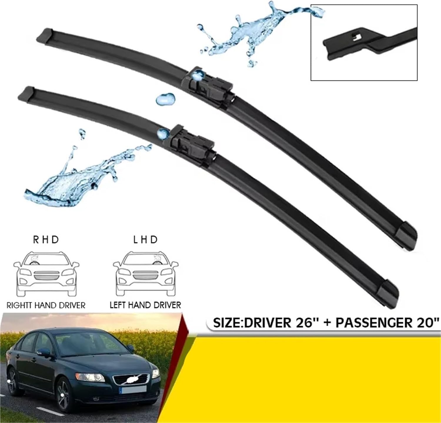 Rear Windshield Wiper Arm Wiper,Rain Brush Compatible Version, For Volvo S40 2006 2007 2008 2009 2010 2011 2012 2013 26"+20" Car Windshield Wiper Blades(Left Steering)(Left Steering)Product Description:1. These wiper blades are made of Rubber+Plastic, providing a smooth and quiet wiping experience. They effectively remove rain and debris from the windshield, ensuring clear visibility in all weather conditions without leaving water streaks2. These wiper blades are aerodynamically designed to minimize wind resistance and noise, even at high speeds. They are durable, suitable for all seasons, and easy to inspect and replaceThese wiper blades feature a direct replacement design for quick installation without splicing or modificationSpecifications:Product Type: Car Wiper BladesMaterial: Rubber+PlasticInstallation Method: Direct ReplacementPackage List:1 X wiper bladesNotes:1. Due to manual measurement, there may be a 0.5-2 cm error in size2. Please confirm your car's wiper blade size and interface before purchasing. If you have any questions or problems with the product you receive, please feel free to contact us