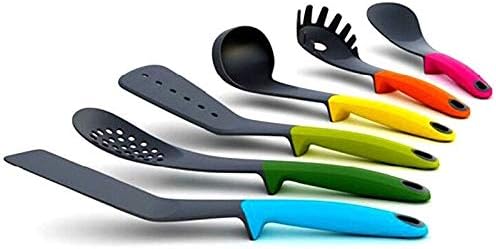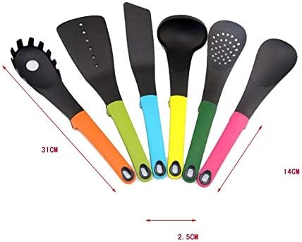 Non-stick 6 Piece Silicone Kitchen Tool Set Shovel Soup Spoon Colander Nylon KitchenwareMaterial: nylon, siliconeComponents: 6 pieces cookware with storage rackMade from food grade nylon and silicone, non-toix, odorless, high temperature resistance, safe to food using, non-stick and easy to clean.6 pieces cookwares in 1 set, meet your differents needs of kitchen on cooking.Comes with a storage rack, help you to organize cookwares in tidy, ave your kitchen space
