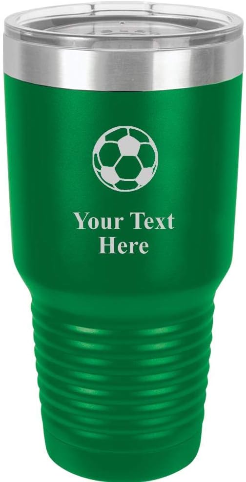 Crown's 30oz Black Soccer Travel Tumbler Features A Clear Lid And Stainless Steel Design. Seamless Double-Wall Vacuum Insulation Keeps Your Hot Drinks Hot And Your Cold Drinks Cold All Day. Easy To Customize With Your Personalization. Great For Weddings Or Any Other Special Event. BPA Free.