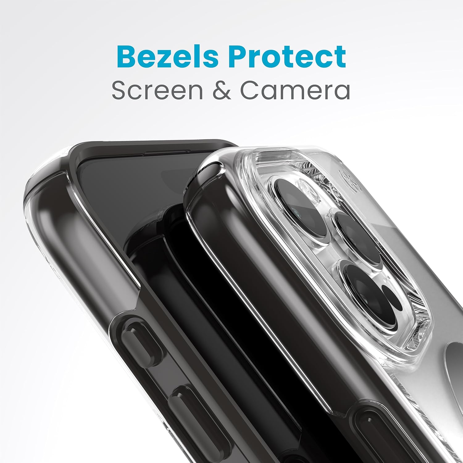 Presidio Perfect-Clear MagSafe case is the clearest, super-protective, pocket-friendly case we’ve ever designed. Our innovative materials allow us to create a case that stays perfectly clear longer. Highly protective, yet slim, this case is pocket-friendly, and is built with precision magnets that work reliably with all Apple MagSafe chargers and accessories. Clearly stylish, but also built tough for life’s rough moments with our clear impact technology. Our proprietary, clear phone-cushioning rubber compresses on impact to protect your phone and resist damage. Naturally our Presidio Perfect-Clear case is real-world tested to withstand drops up to 13 feet. So, no matter what happens, you can be confident you’re protected. Plus, it features our raised bezel. This added edge helps protect your screen from scratches, chips, or the dreaded spiderweb shatter if your phone falls and lands face-down. Speck’s revolutionary new ClickLock no-slip interlock and accessories make using iPhone and MagSafe even better! This case features a recessed receptacle that perfectly matches to the extendable bolt built into Speck ClickLock accessories. This strong two-part design ensures your ClickLock Car Vent Mount, Wallet, and Viewing Stand stay securely fastened to your phone.