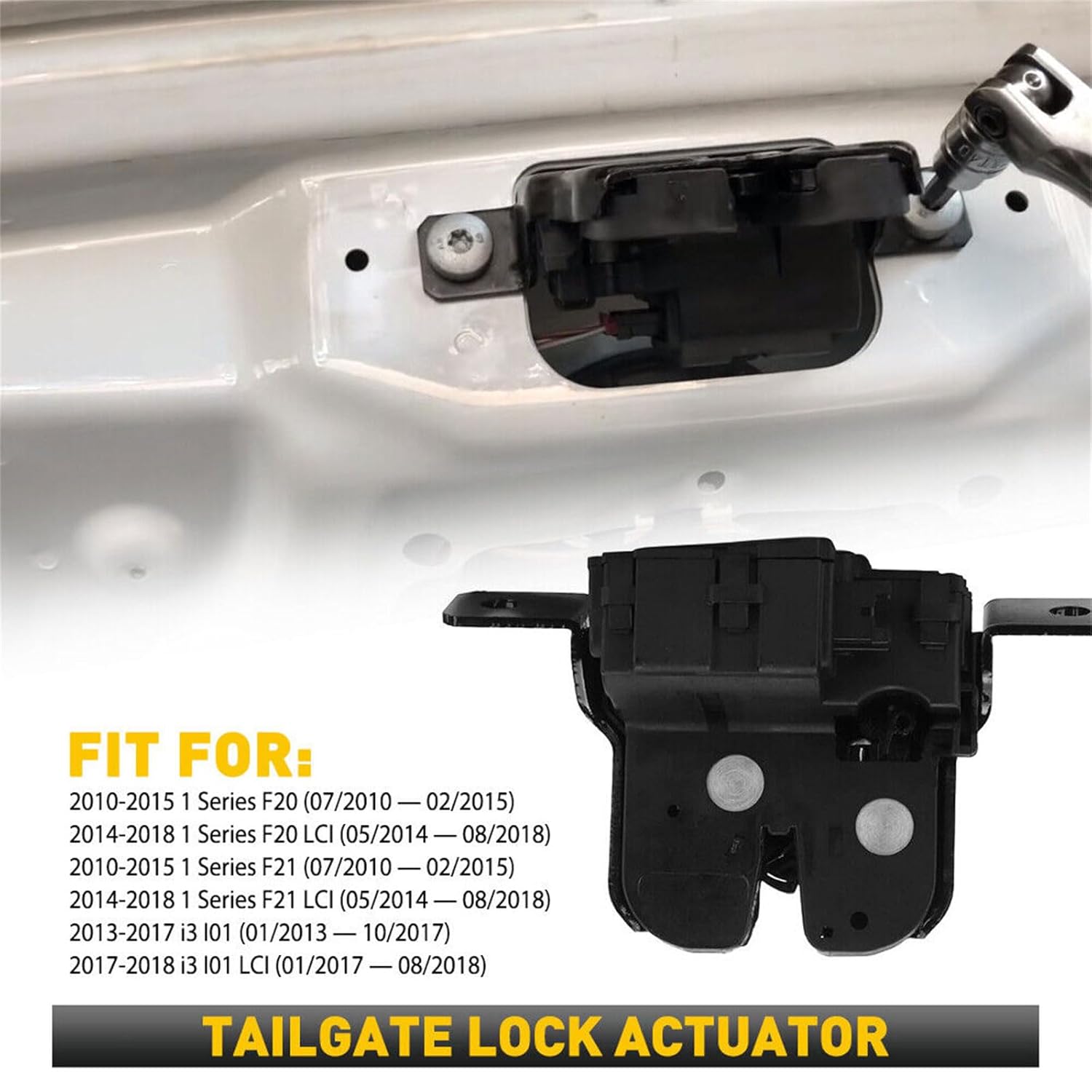 Tailgate Boot Lid Actuator Motor Trunk Luggage Compartment Door Actuator Suitablefor 1-Series I3-Series 51247248075Features:Direct replacement this tailgate actuator motor is designed to match the fit and function of motor on specified applications.Ideal-solution this motor is a replacement-for an original part that has failed due to fatigue, water infiltration or collision damage construction this part is made from materials to performance and a long service life.Made with ABS and high strength steel durability.Original standard, direct replacement-for old or broken-one. Precise design, and firm, and use.Specifications:Size As Picture ShownFor 1-Series i3-Series 51247248075Color:BlackPackage Includes:1x Boot Lid ActuatorNote:①.Please allow 1-2cm errors due to manual measurement, make sure that you do not mind before you order. ②.Due to the difference between different monitors, the picture may not reflect the actual color of the item.Thanks for your understandings.
