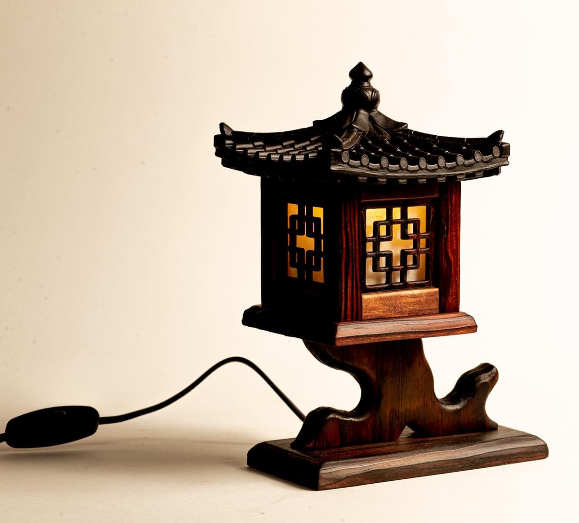 Elevate Your Space with Cultural Elegance Introduce timeless beauty into your home with this handmade wooden lamp, inspired by the architecture of traditional Korean pagodas. Whether used as a bedside light or a decorative accent in your living room, this piece blends cultural charm with functionality. Crafted from natural wood and shaped by hand, each lamp is a one-of-a-kind artwork. The warm glow creates a relaxing ambiance, ideal for winding down, meditating, or setting a calm mood. This lamp is more than just lighting – it’s a conversation piece, a tribute to craftsmanship, and a thoughtful gift for design lovers and culture enthusiasts alike. This unique carved wood table lamp features a structure consisting of traditional Korean house roof and windows. When the light is on, each side reveals the Munsal, the door and window design of Korean traditional houses and temples. This wood lamp radiates soft and comforting natural light to soothe the body and mind, tired from busy urban life.